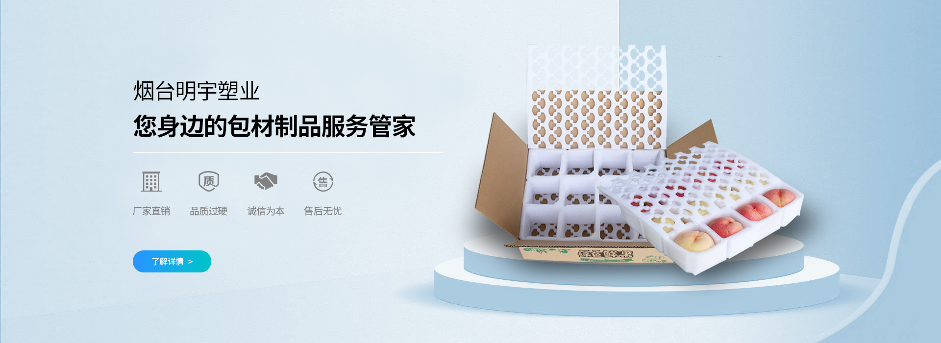 煙臺(tái)(tái)明宇塑料包裝廠成立于2012年8月7日,是一家生產(chǎn)(chǎn)塑料新穎包裝制品的企業(yè)(yè)。主營(yíng)(yíng)煙臺(tái)(tái)PE拉伸膜,煙臺(tái)(tái)EPE珍珠棉,煙臺(tái)(tái)軟泡沫等產(chǎn)(chǎn)品,擁有專(zhuān)業(yè)(yè)的技術(shù)(shù)人員,采用專(zhuān)業(yè)(yè)的技術(shù)(shù)設(shè)(shè)備,配以科學(xué)(xué)完善的管理制度,在激烈的市場(chǎng)(chǎng)競(jìng)(jìng)爭(zhēng)(zhēng)中,我們會(huì)(huì)特別注重質(zhì)(zhì)量,服務(wù)(wù)和環(huán)(huán)保意識(shí)(shí),在全體同仁不懈的努力下,產(chǎn)(chǎn)品深受廣大用戶(hù)的好評(píng)(píng),我們將攜手共創(chuàng)(chuàng)美好的未來(lái)(lái),我們期待著與你的合作!